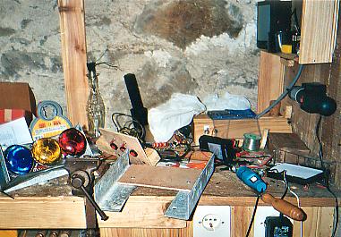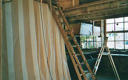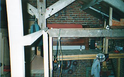 J'ai construit quelques balustrades, et commencé à aménager un coin de contrôle du son et des lumières à côté de l'escalier sur l'agrandissement...